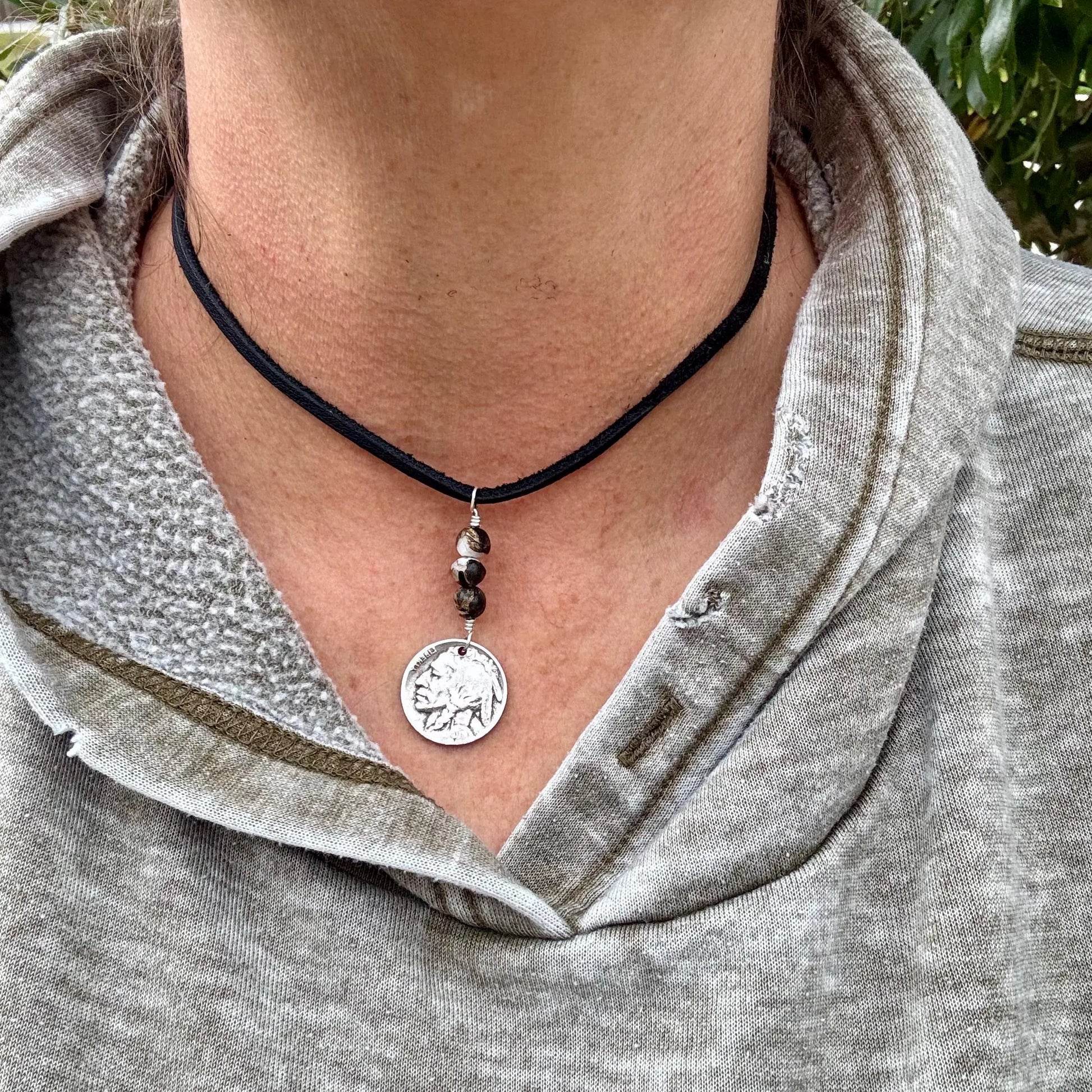 Pendant: Authentic Buffalo Nickel with 2" drop — Indian or Buffalo side display