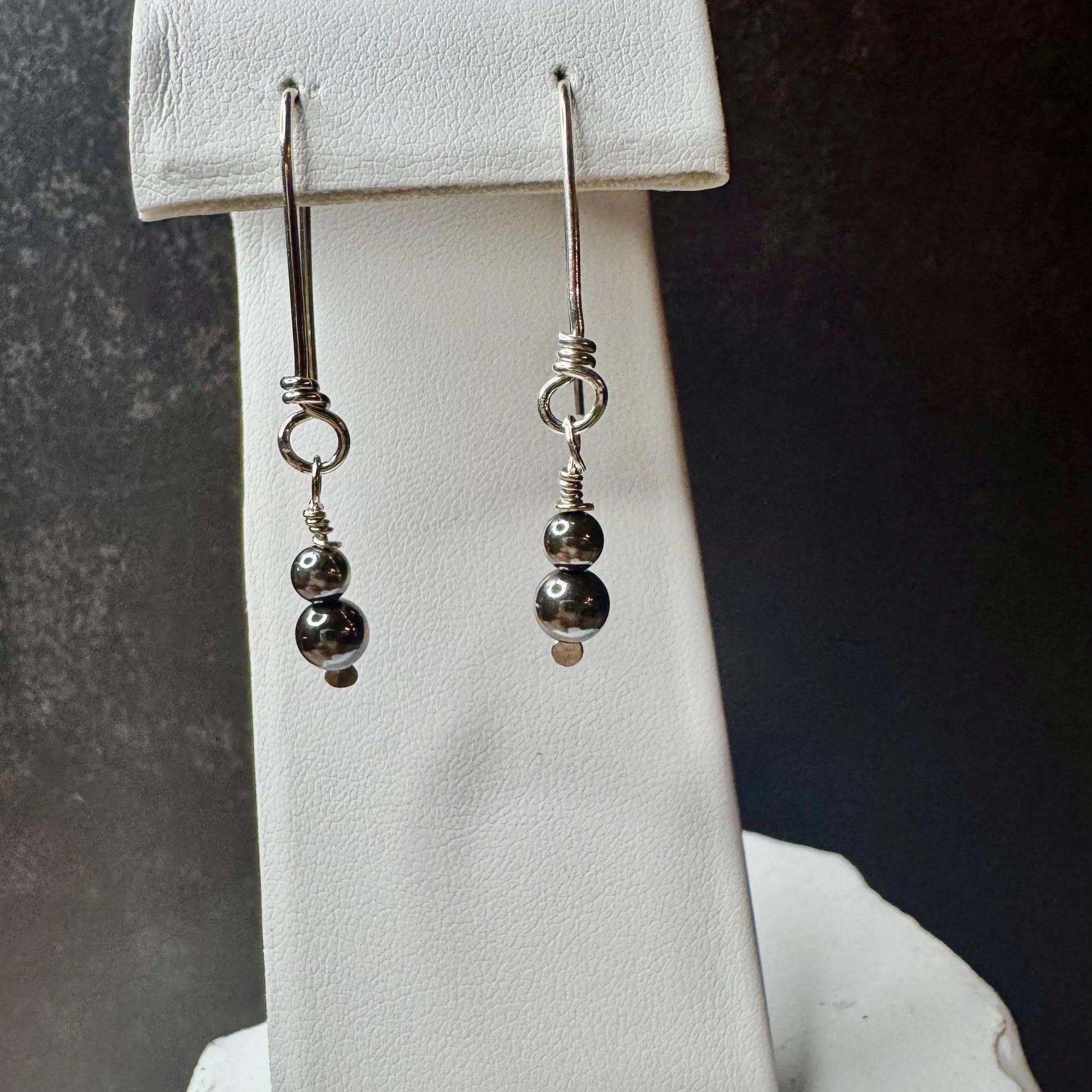 Genuine Navajo pearls, 4-5mm, dangle from hand forged sterling 20g ear wires and paddled circle headpin.  These are tiny, dainty, lightweight dangles. Drop length is about 1.5 inch, including ear wires.
