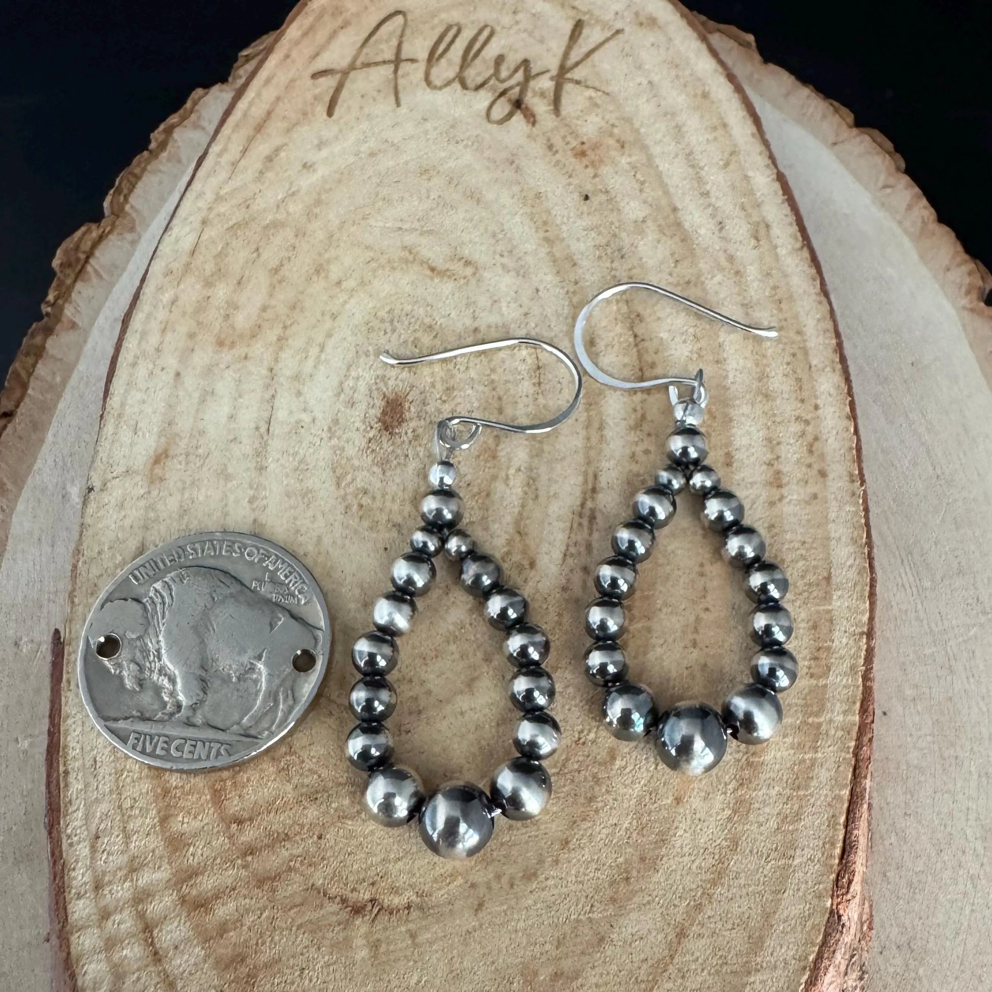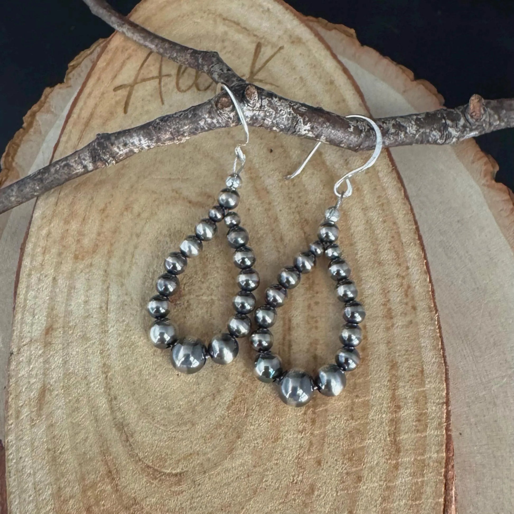 Dainty but mighty. These dainty teardrop earrings feature 3mm–6mm sterling silver Navajo pearls, all looped up on solid 20g hand-forged sterling silver ear wires. With a 1.75-inch drop, they’ve got just enough swing to catch the light and just enough personality to show up with any outfit — from Sunday sweats to date-night denim.