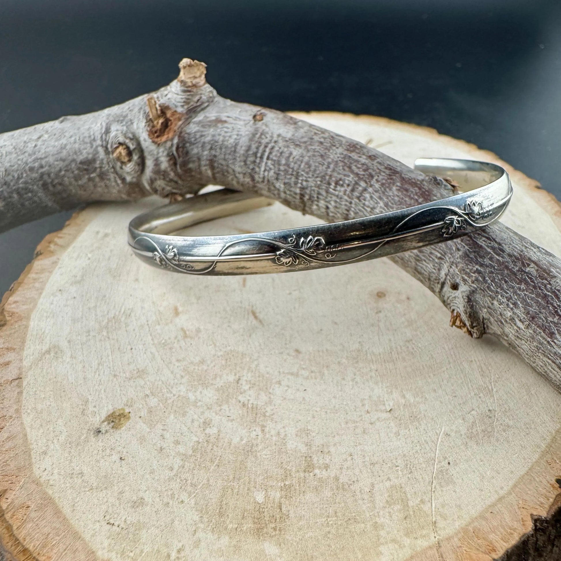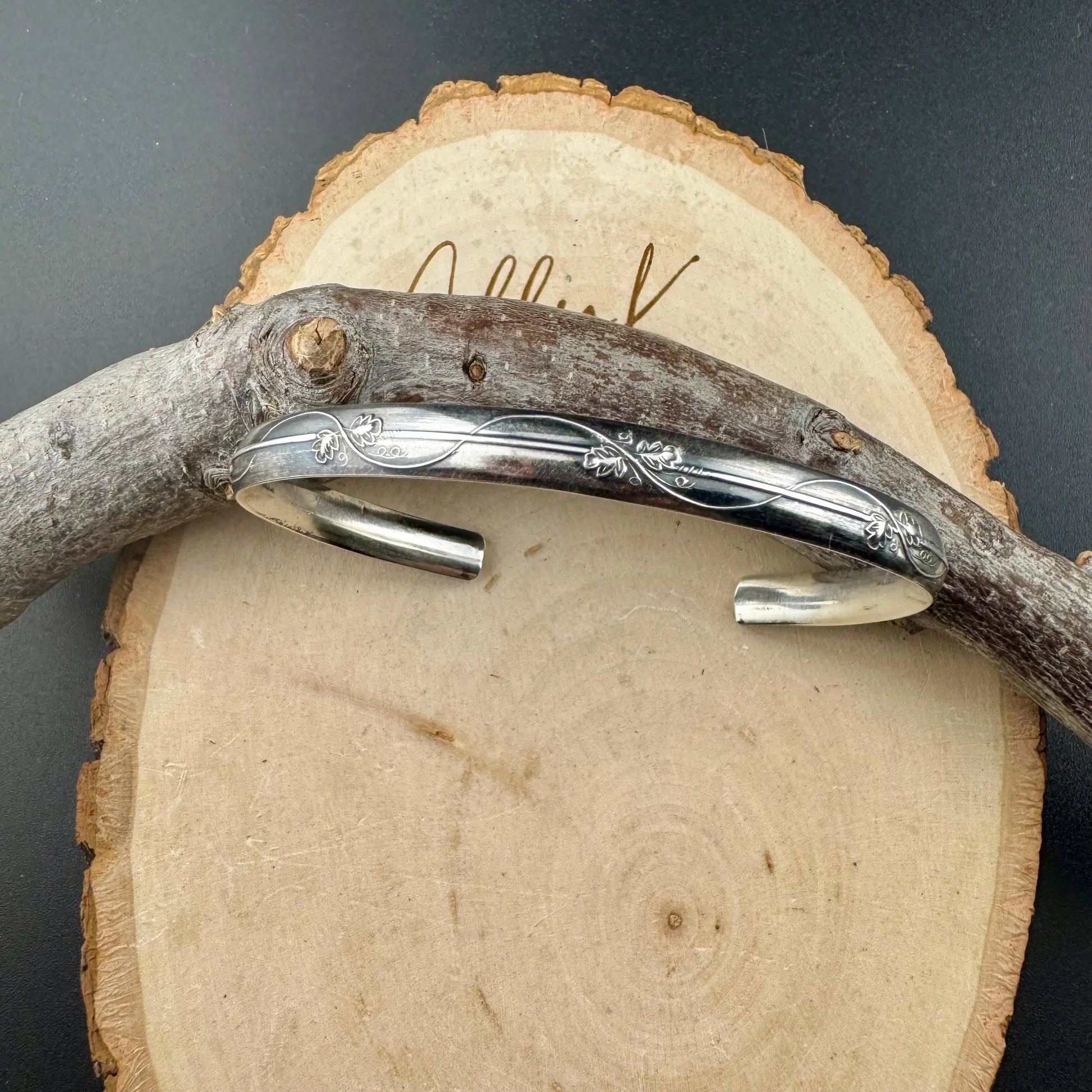 Let nature’s elegance wrap around your wrist with this Flower & Vine Sterling Silver Cuff Bracelet, a true celebration of organic beauty and artisan craftsmanship. Made from solid 925 sterling silver wire with a thickness of 0.112" (2.84mm), this cuff features an intricate floral and vine pattern that gracefully winds around the wrist.