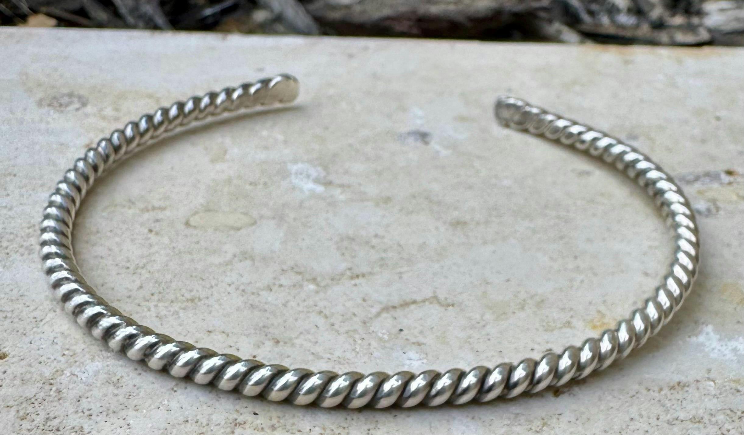 A timeless favorite, this Twisted Wire Sterling Silver Cuff Bracelet is an exquisite blend of elegance and simplicity. Whether you're dressing up for an evening out or adding a touch of sophistication to your everyday look, this adjustable cuff molds gently to your wrist, offering both comfort and style in equal measure.