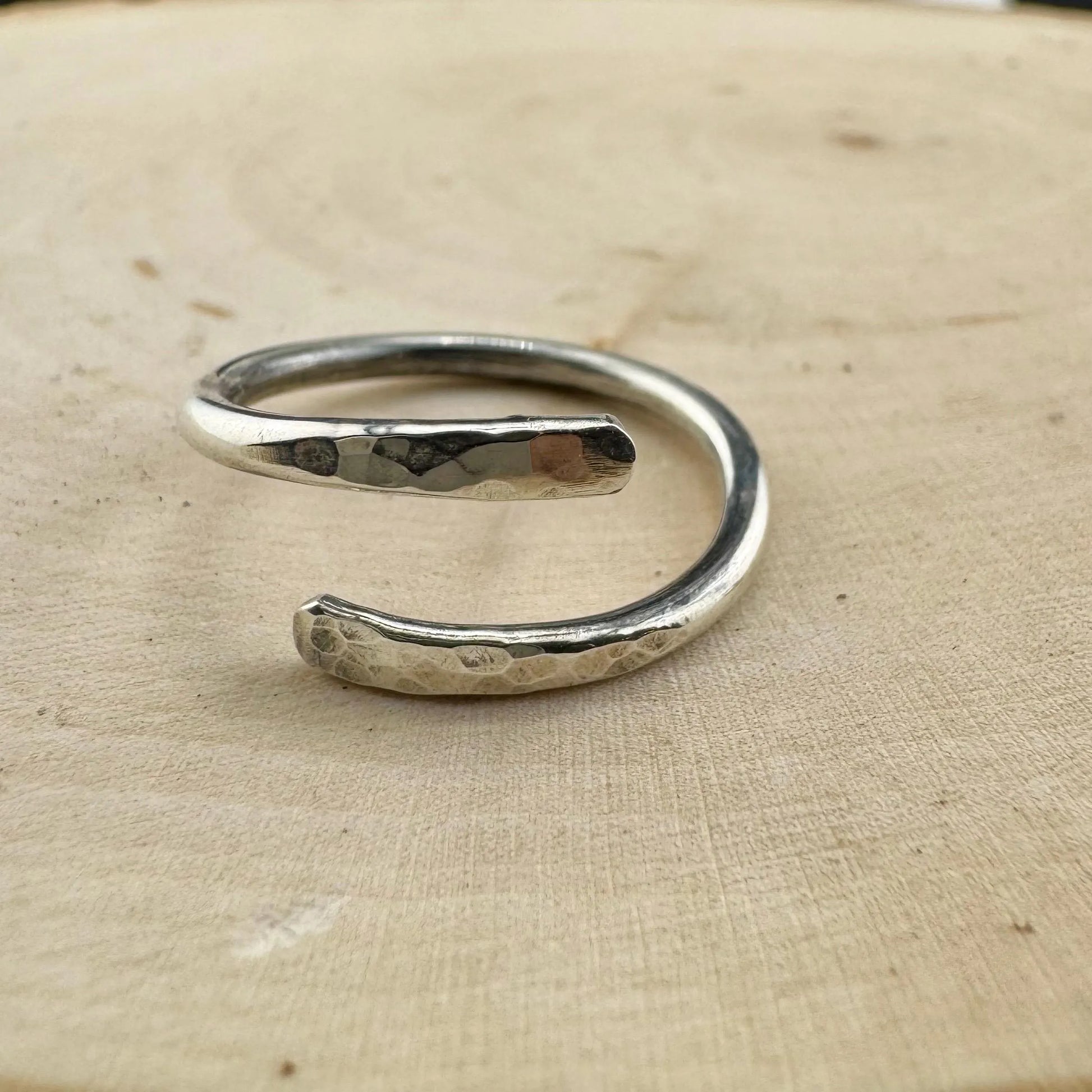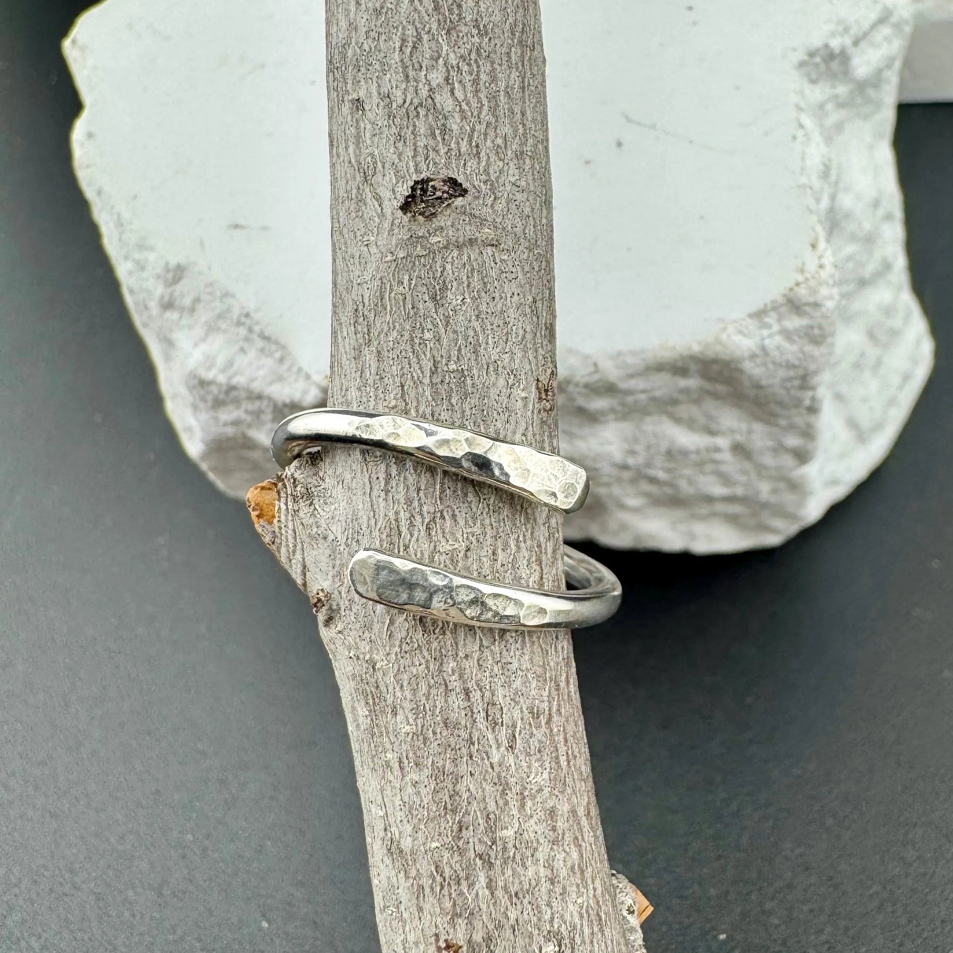 Hammered Coil Sterling Silver Ring – Open Wrap Band | Modern Minimalist - This ring is a little twist, a little shimmer, and a whole lot of style. Made from solid 12-gauge sterling silver wire, each piece is hand-formed, tumble-polished for strength, and finished with a brilliant hand polish — because your fingers deserve a little spotlight.