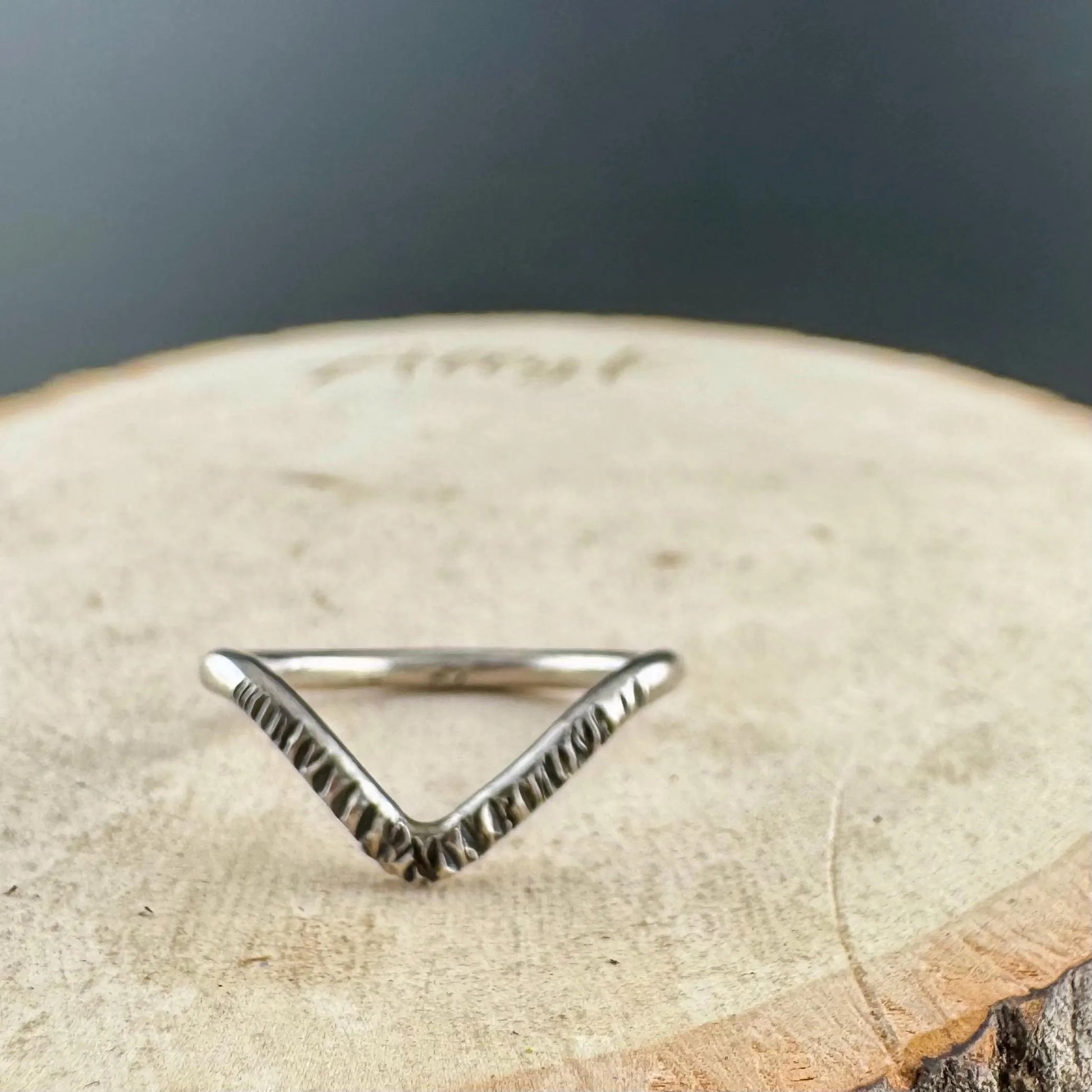 Chevron / Wishbone Sterling Silver Ring – Deep Cut | Textured & Oxidized | Hand-Forged | Timeless Minimalism - This ring is a little edge, a little elegance, and a whole lot of handcrafted soul. Made from solid 12-gauge round sterling silver wire (approx. 0.081" / 2.06mm thick), it’s hand-formed, tumble-polished for strength, and finished with a brilliant hand polish for maximum shine.