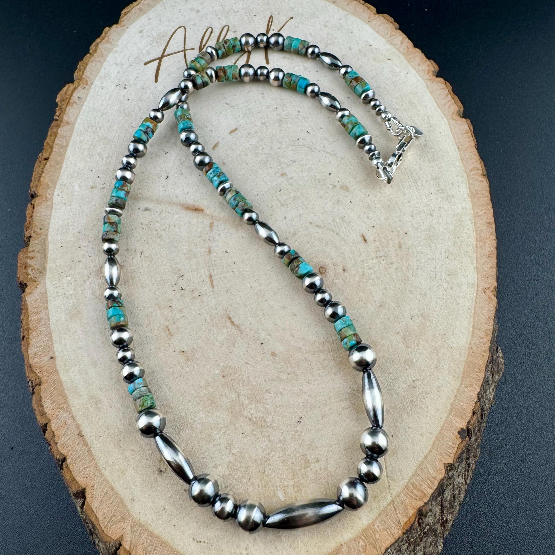 Featuring a dynamic mix of genuine Navajo pearls and natural turquoise heishi beads, this piece offers rich texture, earthy color, and timeless elegance: