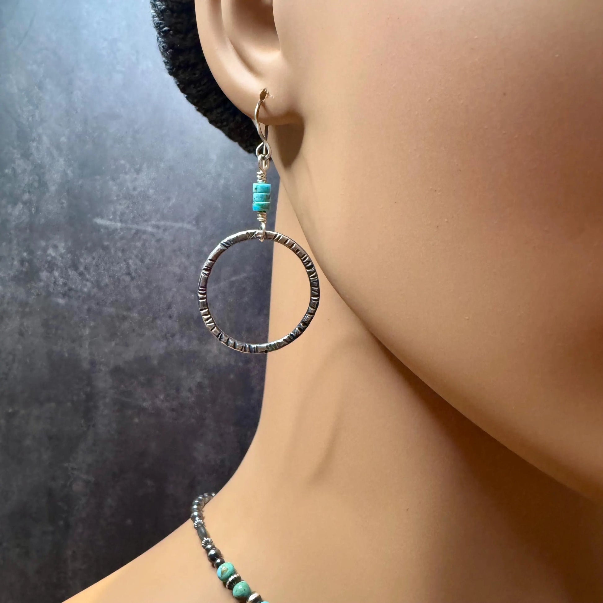 Sterling Silver & Turquoise Earrings – Hand-Forged Circles | Sky Blue Soul | Boho Western Charm